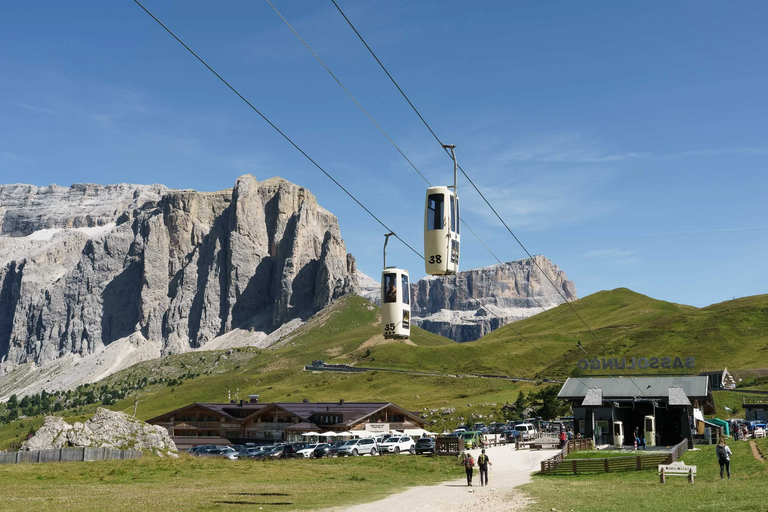Drive to Passo Sella for the unique “Coffin" gondola. This takes you right into the heart of the Sassolungo mountain group for a high-altitude experience.