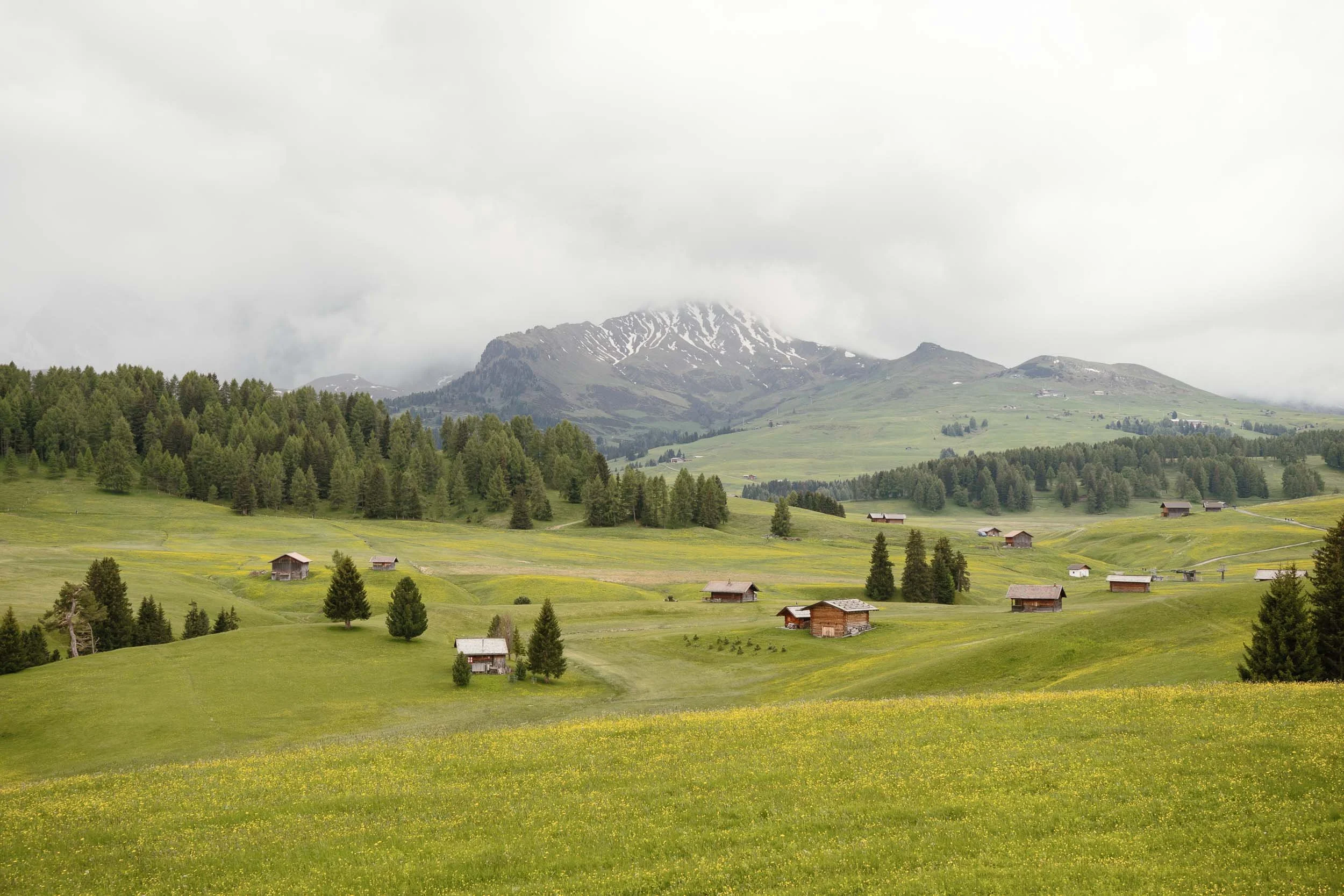 Head back down to Ortisei and take the lift up to Alpe di Siusi (Mont Sëuc). Enjoy a traditional lunch at a mountain hut with views across Europe’s largest high-alpine meadow.